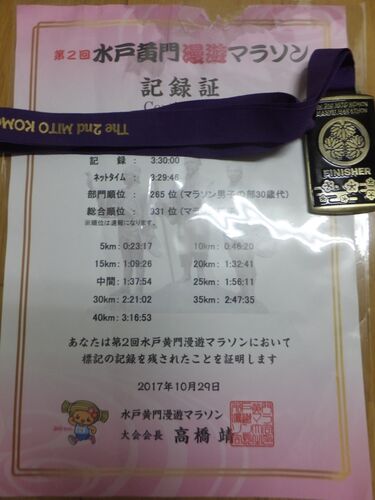 中間点までは3:15ペースで行けましたが、完全に力不足でした(;'∀') 最後は体が冷えて動かなくなってThe End。その結果が3時間30分きっかしの男(笑) ネタはさておき、つくばに向けてはなかなかいい練習になったと思うので、疲れを抜いて来月しっかり借りを返…